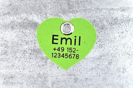 Die Herzform für Hundemarken > beliebt und wirklich hübsch, aber oben breit und unten schmal.