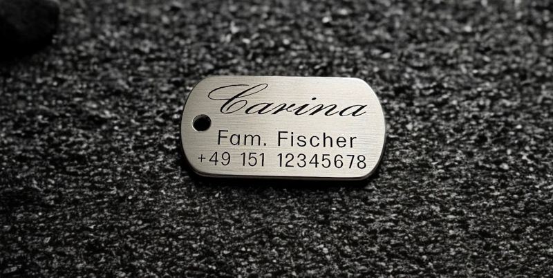 Sonstiges: Hundemarken aus Edelstahl sind sehr robust. Einzige Schwachstelle: der Steg über der Bohrung für den Schlüsselring kann mit der Zeit durchgescheuert werden. Bitte gelegentlich prüfen, ob noch alles in Ordnung ist.