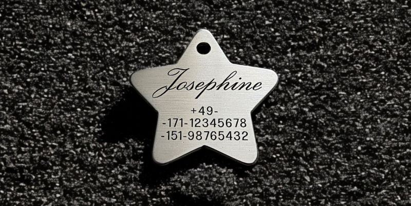 Sonstiges: Hundemarken aus Edelstahl sind sehr robust. Einzige Schwachstelle: der Steg über der Bohrung für den Schlüsselring kann mit der Zeit durchgescheuert werden. Bitte gelegentlich prüfen, ob noch alles in Ordnung ist.