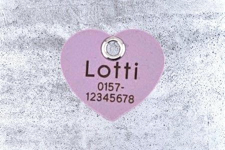 Die Herzform für Hundemarken > beliebt und wirklich hübsch, aber oben breit und unten schmal.