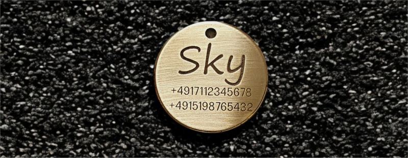 Sonstiges: Hundemarken aus Messing sind sehr robust, haben aber eine Schwachstelle: der Steg über der Bohrung für den Schlüsselring kann mit der Zeit durchgescheuert werden. Bitte gelegentlich prüfen, ob noch alles in Ordnung ist.